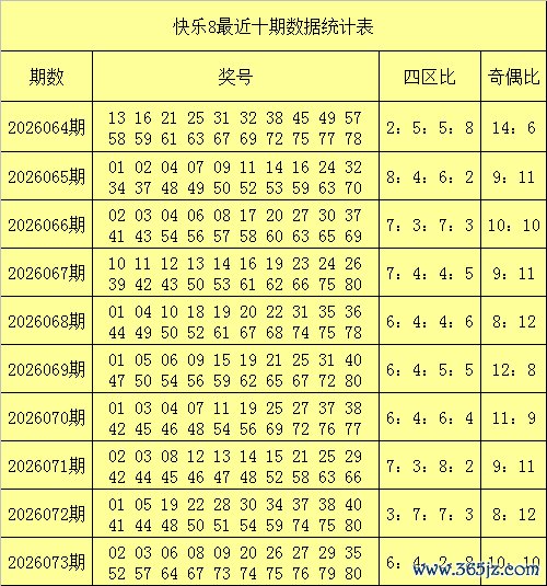 快乐8第2026073期开出奖号:02 03 06 08 09 20 26 27 29 35 52 57 64 67 73 74 75 76 79 80,其中奖号和值为862,跨度为78,012路比为6:6:8,四区比为6:4:2:8,奇偶比为10:10。